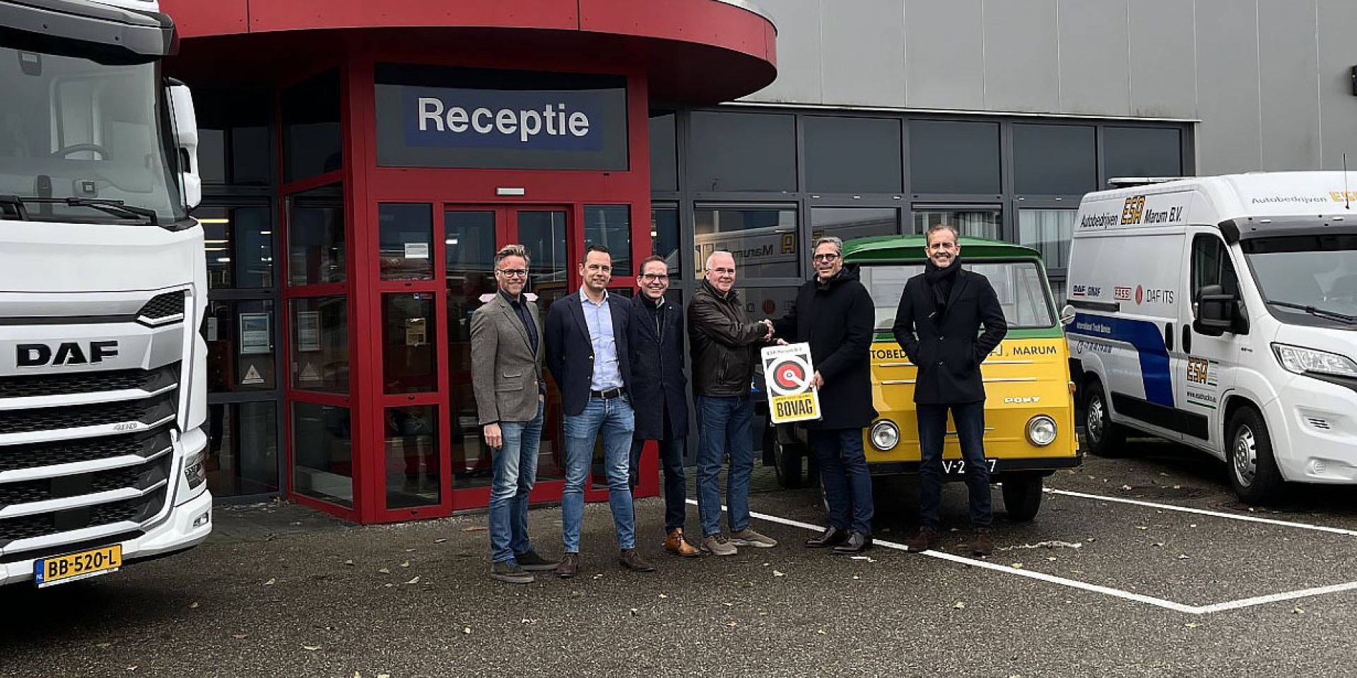 Frank Ruygrok (BOVAG), Jurjen Ypma (Commercieel directeur ESA), Harry Hofstee (Aftersales directeur ESA), Hans Everts (BOVAG), Wim van Nispen (directeur ESA) en Klaas Elema (directeur ESA).