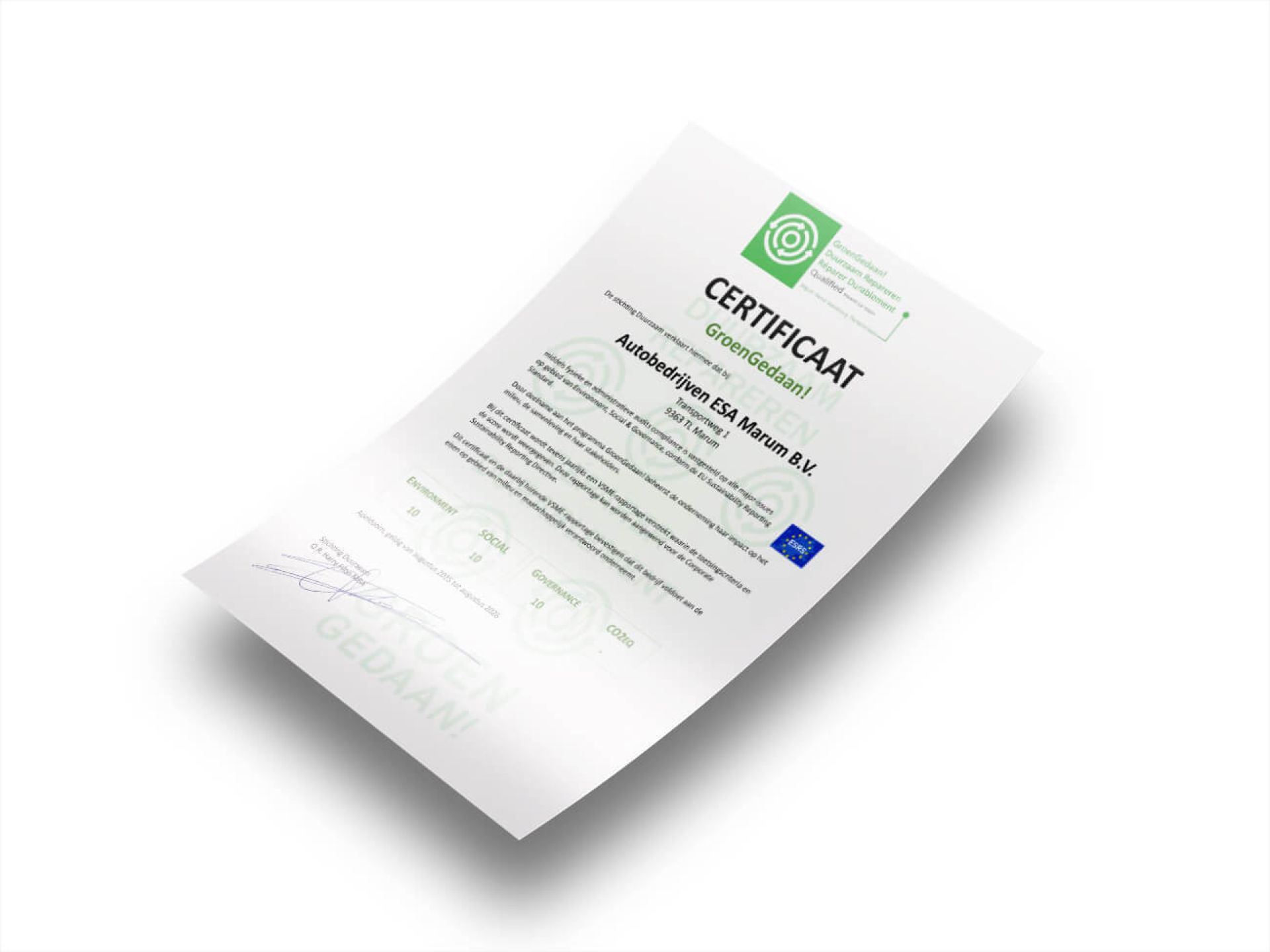 Schade aan bedrijfswagens is altijd vervelend, maar ESA zorgt voor een snel en vakkundig schadeherstel. Onze Schadeherstel afdeling heeft het GroenGedaan! Certificaat. Dat wil zeggen dat wij bewezen kwaliteit leveren met oog voor mens en milieu door op een milieuvriendelijke manier te repareren en herstellen.